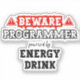 The phrase “Beware: Programmer Powered By Energy Drink” captures the late-night coding grind with a dose of humour. A witty sticker perfect for programmers, software developers, coders, and IT professionals who survive on energy drinks while debugging and building the future. Great for tech students, startup teams, or anyone who knows the hustle of programming life.