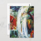 A fine art postcard featuring the painting, The Bewitched Mill (1913), by the German Expressionist artist Franz Marc (1880-1916). An abstract of a mill with flowing water in the cubist style with primary colours. He was the founder of the Der Blaue Reiter (The Blue Rider) group of artists.