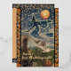 This unique, autumn-themed Halloween invitation has an old-fashioned, mystical feel. This Halloween card shows a witch flying on a broomstick outlined in stars against the night sky over an autumn harvest field. The design is from a 1910s era Halloween card. Reminiscent of a time when All-Hallows-Eve was a night of whimsy and mystery. Your Halloween party guests will be Bewitched!