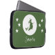Cast a spell with this charming yet simple Bewitching Halloween Electronics Sleeve in green featuring a full moon and stars behind a flying witch. This captivating laptop sleeve is perfect for toting your gadget around with a dash of wicked flair. Easy to customise, simply add your own text in the fields provided. Fonts and text colours may be changed by clicking on the "Customise It" button.