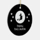 Cast a spell with this charming yet simple Bewitching Halloween Ornament featuring a full moon and stars behind a flying witch. This fun Halloween ornament would be a magically chic decor item or keepsake. Easy to customise, simply add your own text in the fields provided. Fonts and text colours may be changed by clicking on the "Customise It" button.