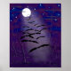 The bewitching hour is nearing, spooky fun with bats, a white full moon, stars and tree silhouettes on this poster print.
