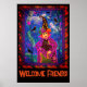 Dress up your home this Halloween with this fun colourful poster. Put it on your front door to welcome party guests or trick or treaters! A cute sassy red headed witch holds her black cat on a mysterious Halloween night, three mischievous crows caw in the dead trees, while two ghosts and lots of bats fly through the spooky sky!