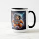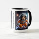 A whimsical cartoon astronaut floats through space and time, navigating a cosmic adventure. The light-coloured, dotted-textured background evokes a sense of weightlessness and wonder. "Original Image was generated by Meta AI. AI generated artwork. Licensed under CC BY-SA 4.0."