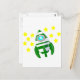 Beyond the stars has yellow stars and a green rocket. Add your own text to personalise the design.