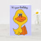 Funny cute cartoon duck birthday card. He says it's just ducky that it's your birthday. Great for expressing Happy Birthday wishes.