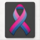 An awareness ribbon of Bisexual Pride stripes for acceptance and understanding of bi people. Curvaceous lines add an active, accessible tone to the message of visibility and inclusion.
