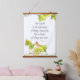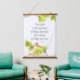 A hanging tapestry featuring a Bible scripture from the book of Hebrews 11:1 KJV and decorated with watercolor illustrations of a little orange hummingbird in a tree with tufts of cotton seeds tucked in the leaves.
