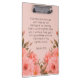 The clipboard features watercolor pink blossoms set against a fairer pink background. Isaiah 41:10 is centered in sans serif font. Just edit the design and add in your name. Prefer a different portion of scripture or have a life verse that speaks to your heart? Click to edit the design and swap out the Bible verse for one that's perfect for you.