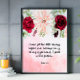 Decorative Bible quote with gentle flowers on a reddish watercolor background and handwritten font.