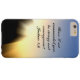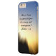iPhone Case features scripture Joshua 1:9, 'Have I not commanded you be strong and courageous?', on a beautiful sunset background.