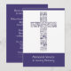 Simple, modern and elegant Christian cross with Bible verses from John (cut-out effect into white background to show the colour background of your choice behind - here purple). Design on flat card invitation. You can easily change text (colour, font, size and position) and background colour by clicking the personalise or customise button. Available in copper and golden colours. Matching memorial service guest books (hard cover and binder with filler pages, sympathy thank you photo cards (flat card and note card) and more...