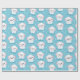 The image is a cute pattern featuring smiling Bichon Frise puppies on a blue background with playful bone and paw print accents.