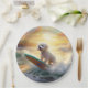 Bichon Frise Beach Surfing Painting Paper Plate