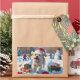 A heartwarming holiday illustration featuring a cheerful dog playing in the snow, wearing a Santa hat and surrounded by colourful gift boxes. In the background, children build a snowman beside a snow-covered Christmas tree, creating a joyful winter wonderland. Perfect for spreading holiday cheer and capturing the magic of Christmas.
