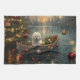 Set sail into the magic of the holiday season with this beautifully detailed illustration, showcasing a proud dog sitting in a festively decorated boat, gliding across a serene Christmas lake. The twinkling lights from nearby pine trees reflect off the water, casting a warm, festive glow that enhances the cosy ambiance. Ornaments dangle from the boat's sides, while glowing lanterns light the way, creating a scene that captures the true essence of Christmas warmth and joy. This nostalgic artwork brings a touch of holiday magic to any space, perfect for those who cherish the spirit of the season.