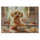 Add a bright and cheerful touch to your kitchen with this adorable Bichon Frise design featuring a fluffy pup baking in a cozy setting. With its soft white coat and joyful expression, this artwork brings warmth and charm to any space.