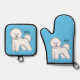 Bichon frise dog cartoon illustration oven mitt & pot holder set
