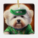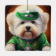 Bichon Frisé Dog Driving Bike St. Patrick's Day Ceramic Ornament