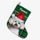 Bichon Frise Dog Holiday Green Plaid Dog's Name Large Christmas Stocking