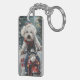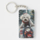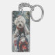 Bichon Frise Dog Riding Motorcycle Christmas Key Ring