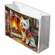 Bichon Frise Fireplace with Christmas Lights Large Gift Bag