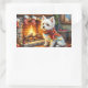 Bichon Frise Fireplace with Christmas Lights Rectangular Sticker