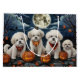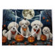 Unleash the spooky spirit with this eerie Halloween design featuring a pack of dogs under a dark, moonlit sky, surrounded by flying bats and glowing pumpkins. Perfect for those who love a touch of frightful fun with their furry friends!