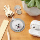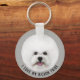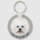 Cute key chain featuring an illustration of a Bichon Frise. Customisable background colour and texts. Perfect gift for the dog lover or Bichon Frise owner.