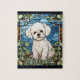 Great jigsaw puzzle featuring a Bichon Frise dog in the style of a stained glass window.