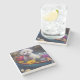 The coasters are gorgeous, a quality feel and heavy weight. They look like a precious archeological find. A rustic stone juxtaposed with a modern floral black and white print. I like the way the print goes slightly imperfect on the cut stone edges giving them a kind-of natural beauty.
