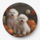 Bichon Frise Puppy Autumn Delight Pumpkin Paper Plate