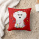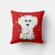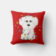 Fun and Festive Bichon Frise wrapped in Christmas Lights Decorative Red Throw Pillow