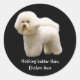 A cheerful, happy dog, the Bichon Frise is small and sturdy with a dark-eyed inquisitive expression and a plumed tail it carries merrily over the back. The coat must be white, but may have shadings of buff, cream or apricot around the ears or on the body. The Bichon is a naturally gentle, playful dog. He loves activity and requires regular exercise. His hair grows continually and does not shed, so extensive grooming is necessary to prevent mats. Bichons also tend to be a good breed for allergy sufferers. Gentle mannered, sensitive, playful and affectionate. A cheerful attitude is the of the breed and one should settle for nothing less. This product is a great gift for you or anyone who loves Bichons.