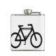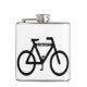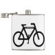 This hip flask features a simple, contemporary design of an abstract pattern of a black bicycle on a white background.