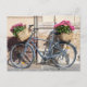 A vintage bicycle rests against a timeworn European building adorned with overflowing pink flower baskets. This romantic travel scene captures old-world charm, ideal for travel blogs, postcards, lifestyle brands, and spring-themed stock photography.