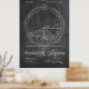 An old invention of a monocycle patented in 1894 designed for wall art on a chalkboard background.