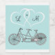 A great vintage image of a Bicycle built for two is joined by two interlocking hearts in white with the initials of the couple and a plus sign on a soft aqua background, to make this adorable retro romantic bike themed wedding wine bottle label. Ready to customise with your initials.