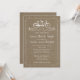 Burlap Wedding Invitations. Tandem bicycle built for 2 with vintage curly ornaments and scroll frame on natural tan sackcloth background. Casual handwritten retro typography makes it perfect for rustic farm or country estate weddings, but with a few changes you can create an entirely different appearance suitable for traditional or modern weddings with a touch of sophisticated charm for contemporary couples. Easy to use versatile template can be modified for formal or semi-formal weddings. Click Customise It to change the type style, colours, and size of fonts. Please contact us for help with customisation, or if you need additional room for your wedding details. Note: The burlap background is an image PRINTED on paper stock -- it is not real textured material.