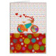 For the girls a romantic bike themed design, with a colourful bicycle and red hearts, colour dots and music notes