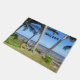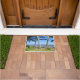 A Doormat with a photograph of a colourful blue and green Bicycle by the ocean, with Palm Trees, in Florida, with the word Welcome.