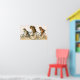 Adorable vintage illustration of two cats and a puppy riding their bikes with backpacks on.