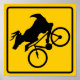 International style road and highway sign advising of deer on bicycles in the area. Based on an actual sign seen in Gravenhurst, Ontario, Canada.