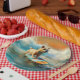 Biewer Terrier Beach Surfing Painting Paper Plate