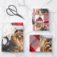 This irresistible Biewer Terrier dog is ready for the holiday season with a Santa hat, paired with a festive red Christmas tartan plaid on this set of gift wrap for the dog lover.