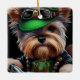Biewer Terrier Dog Driving Bike St. Patrick's Day Ceramic Ornament