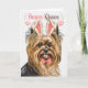 Biewer Terrier Dog in Bunny Ears for Easter Holiday Card