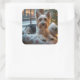 Biewer Terrier With Christmas Lights Holiday Square Sticker