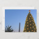 In addition to the National Christmas Tree, there are trees for each of the fifty states in front of the White House, and you can see the Washington Monument from the display. This picture shows the National Tree and the Washington Monument near sunset, and you may see one of the state trees in the corner too. This photo is also found as the widescreen wallpaper "Big and Little Christmas Trees II" in the Holiday and Christmas section of MLeWallpapers.com.
