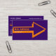 A business card template with a big arrow motife with company details on the front and name and contact details on the back. The back of the card is decorated with three smaller versions of the main arrow motif.